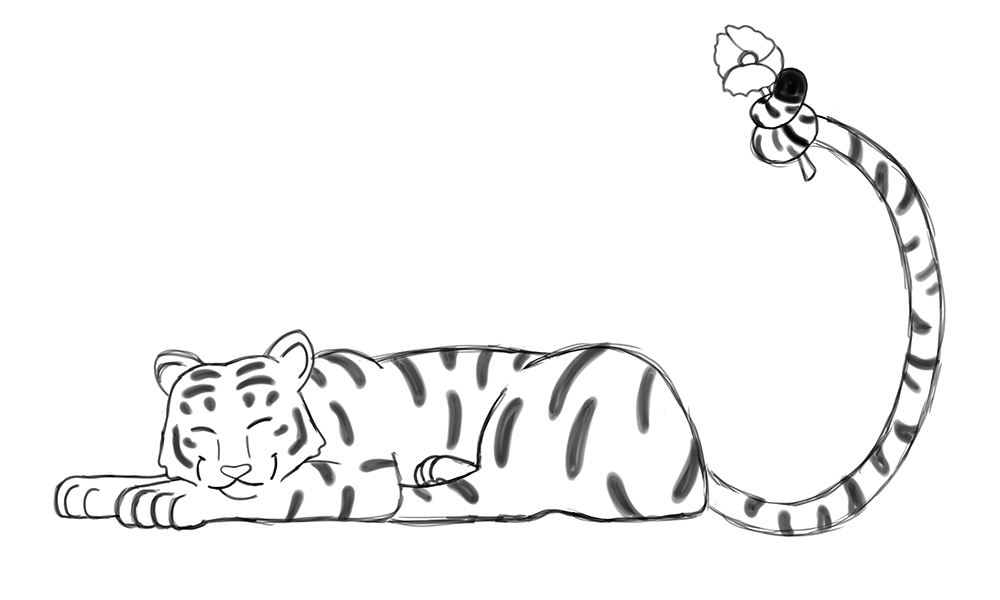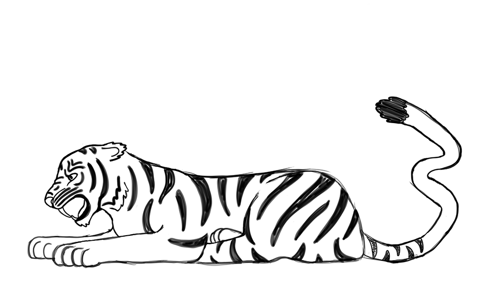 Ved konsultation med faglæreren, besluttede jeg mig for at ændre tigerens udtryk og den endelige skitse var mere passende til opgaveløsningen.